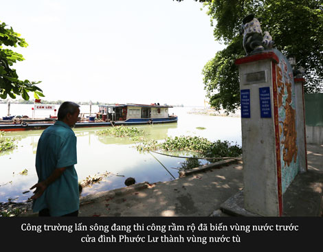Ông Sơn thoáng cau mày. Nhìn hiện trạng hiện tại, bến nước trước cửa Đình Thần Phước Lư đã lọt thỏm vào phía bên trong. Mỏm đất được san lấp nhô hẳn ra lòng sông Đồng Nai, chắn con nước từ thượng nguồn xuống, biến dòng nước vẫn chảy thao thiết trước mặt đình trở thành một vũng nước tù.