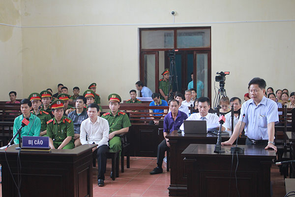 | Các luật sư bào chữa cho các bị cáo trước tòa. |