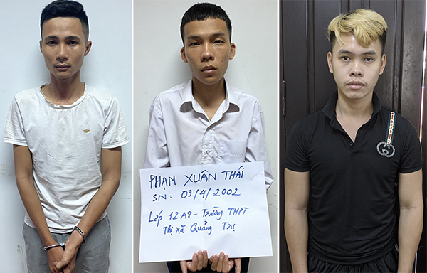 7 đối tượng đã bị cơ quan điều tra thực hiện lệnh bắt giữ người trong trường hợp khẩn cấp về hành vi sử dụng máy tính, mạng viễn thông, phương tiện điện tử thực hiện hành vi chiếm đoạt tài sản. Các đối tượng gồm: Phạm Xuân Thái, SN 2002, trú tại Triệu Thành, Triệu Phong, Quảng Trị, học sinh lớp 12A8 trường THPT Quảng Trị; Lê Viết Quý, SN 1994, trú tại Phường 1, TP Đồng Hà, Quảng Trị; Cao Đăng Nhu, SN 1995, trú tại Triệu Giang, Triệu Phong, Quảng Trị; Trịnh Minh Vương, SN 1990; Nguyễn Văn Điền, SN 1997; Lê Hữu Quý, SN 1993; Trịnh Hà Sơn Bình, SN 1986, cùng trú tại Thị xã Hương Trà, tỉnh Thừa Thiên Huế.