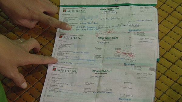| Các giấy chuyển tiền qua tài khoản của chị N. |