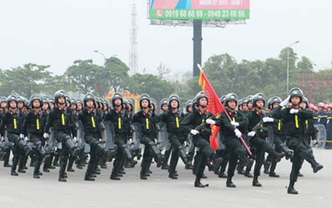 | Lực lượng CSCĐ trong Lễ xuất quân bảo vệ Đại hội Đảng. |