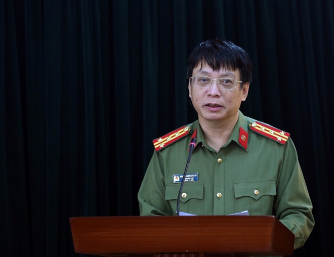 | Đại tá Phạm Quang Khải phát biểu cảm ơn đại diện các Tướng lĩnh Công an và tổ chức, doanh nghiệp đã tặng quà, động viên phóng viên của Báo. |