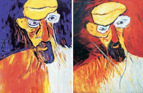 | Bức tranh thật của họa sĩ Văn Thơ và bức tranh nhái. |