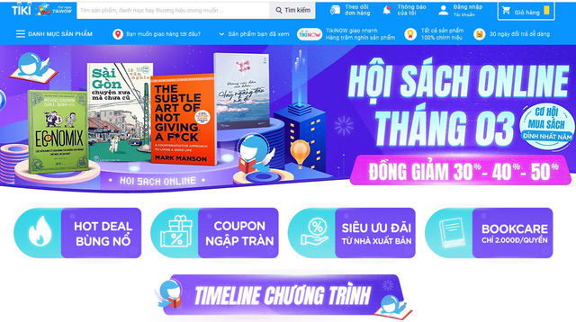 | Một trang sách trực tuyến uy tín quảng cáo chương trình giảm giá sâu cho khách hàng. |