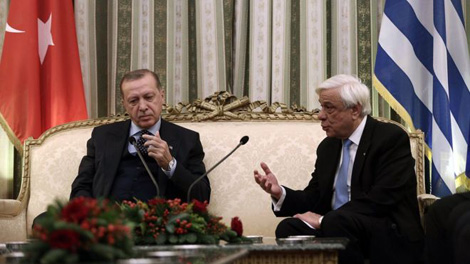 | Tổng thống Thổ Nhĩ Kỳ Recep Tayyip Erdogan (trái) hội đàm với Tổng thống Hy Lạp Prokopis Pavlopoulos. |