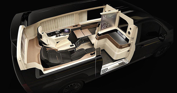 | Dưới sự "phù phép" của Italdesign, chiếc Mercedes-Benz V-Class biến thành "phi thuyền mặt đất" Vulcanus. |